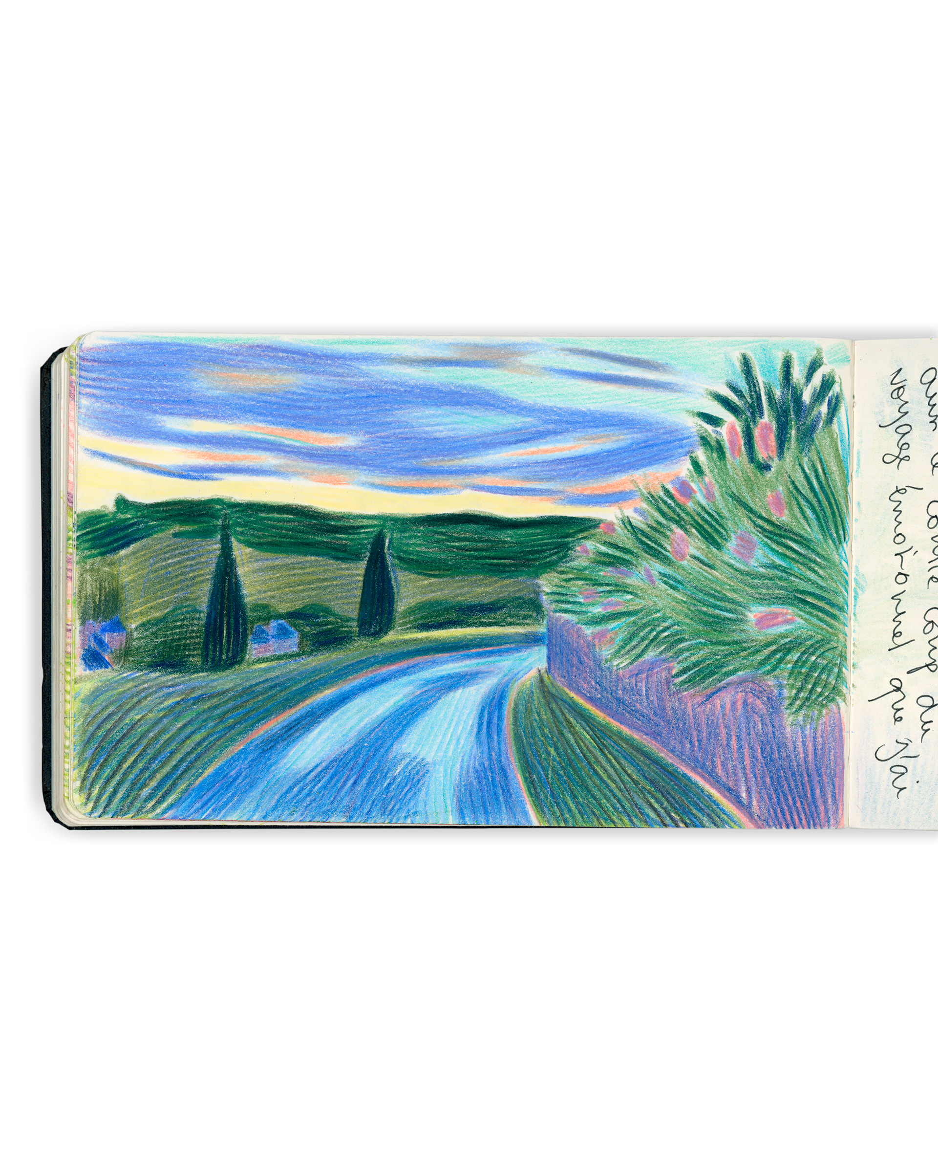 Dessins personnels dans des carnets autour de la thématique du voyage. 2025