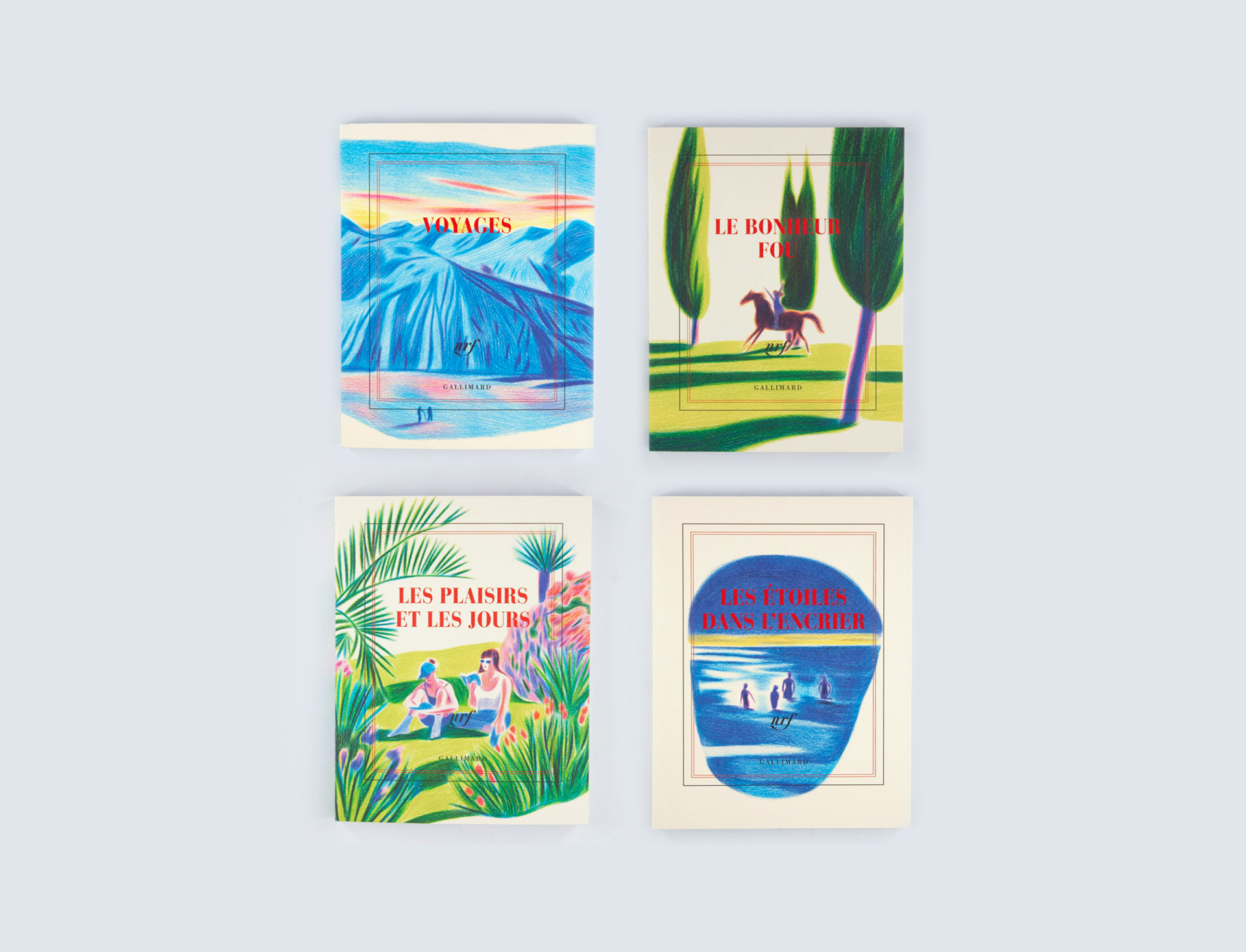 Illustrations des couvertures de la « Blanche » de la Papeterie Gallimard. Cette gamme de 4 carnets est une édition limitée anniversaire. Ce carnet possède des pages légèrement lignées et s'ouvre par une citation extraite de l'œuvre dont il est le reflet, signée du nom de l'auteur. Couverture papier Tintoretto 200 g/m² fabriqué spécialement par Fedrigoni. Papier intérieur Schleipen Fly 90 g/m². 4 références disponibles.