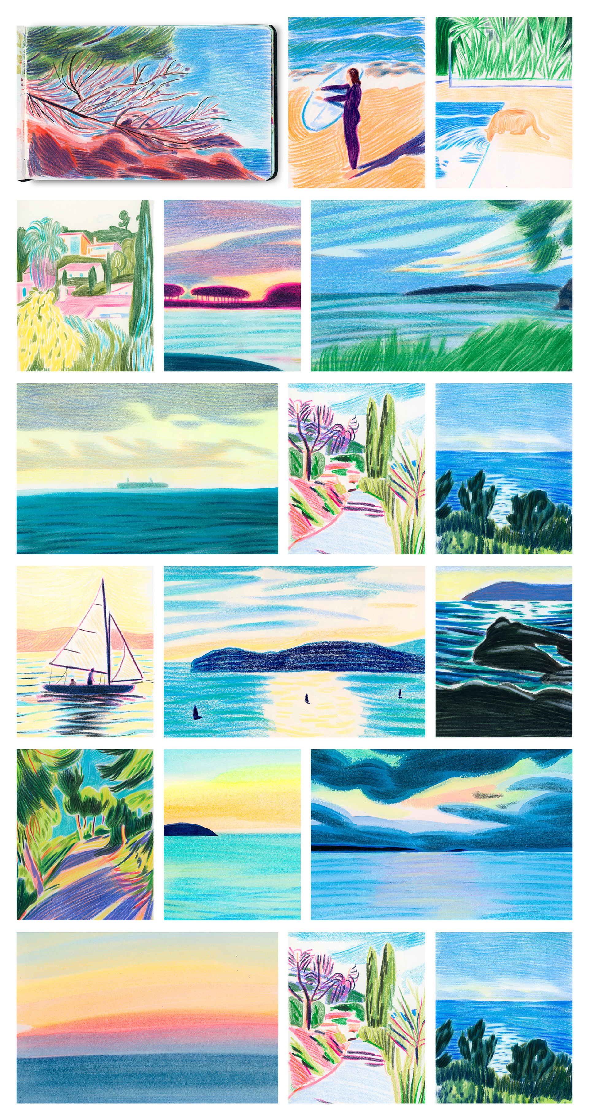 De janvier à février 2026, j’ai participé à la résidence artistique de La Rocabella, domaine situé dans les hauteurs du Pradet. Durant cette période, j’ai développé un ensemble de dessins et de peintures nourris par l’environnement du lieu, son calme et ses paysages. Cette résidence a été l’occasion d’explorer de nouvelles pistes de travail, de prendre le temps d’observer, et de laisser émerger des formes et des couleurs inspirées par ce territoire et par le rythme particulier de la vie en résidence.